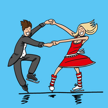 Erste Schritte mit dem Partner, gemeinsam Eislaufen und einfache Tänze sind der Inhalt dieses Kurses.